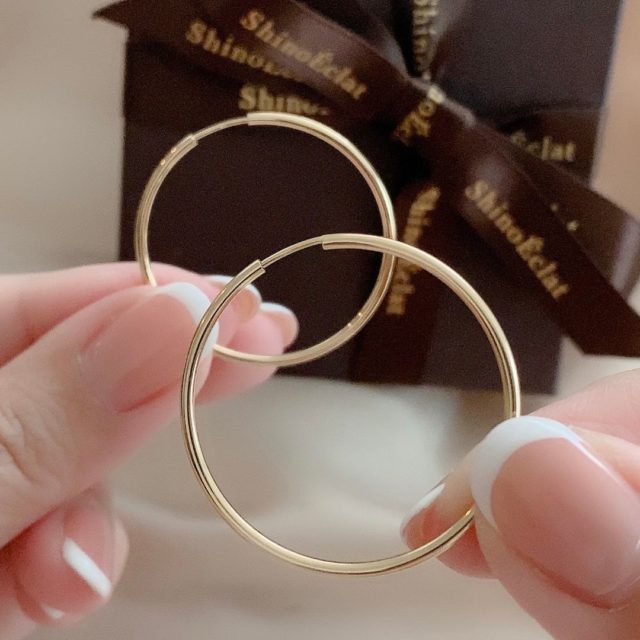 どれがよいのか困ってしまうなら、当店の人気商品「18K フープピアス Infini(アンフィニ) 1.5mm × 30mm」がおすすめです。